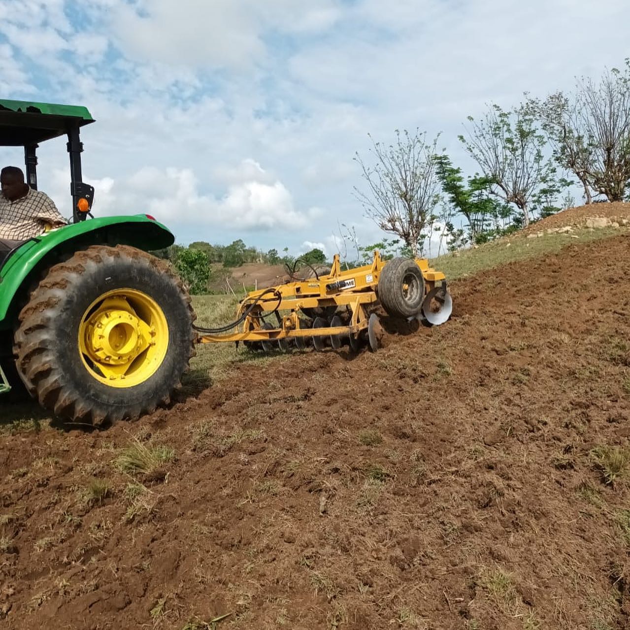 Iniciando arado con un segundo tractor en Villa los Almácigos, Santiago Rodríguez.