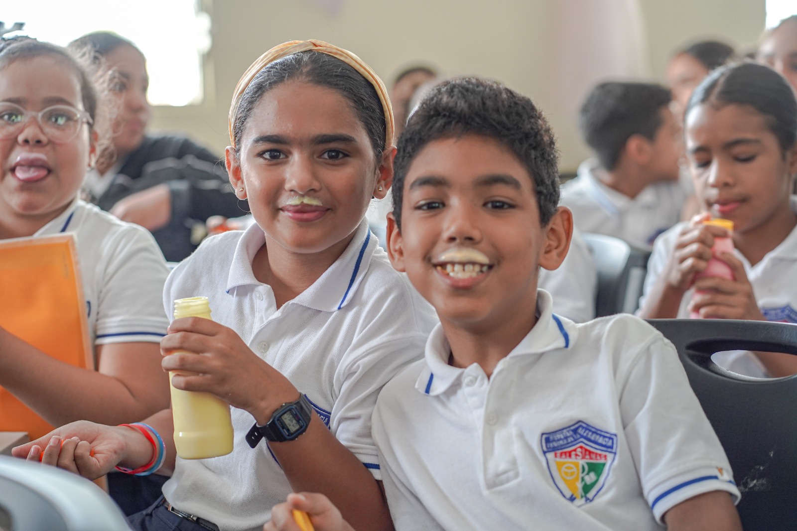 "La leche que se sirve en el desayuno escolar es de producción nacional ?? y este es un alimento básico, completo y equilibrado, que proporciona un elevado contenido de nutrientes, como proteínas, hidratantes, vitaminas, minerales y lípidos, en relación al contenido calórico”.