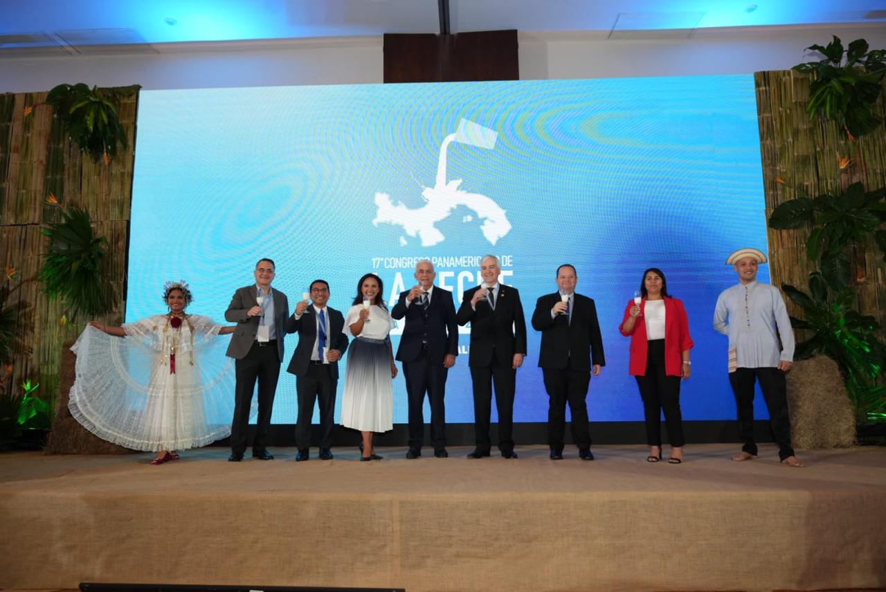 ¡La República Dominicana presente en el 17 Congreso de la Leche 2024 en Panamá! Un grupo destacado de nuestros colaboradores de Conaleche, la Cooperativa de la Federación de Ganaderos de la Línea Noroeste, y la Cooperativa de Ganaderos de Hato Mayor se unieron para representar con orgullo a nuestro país en este importante evento.