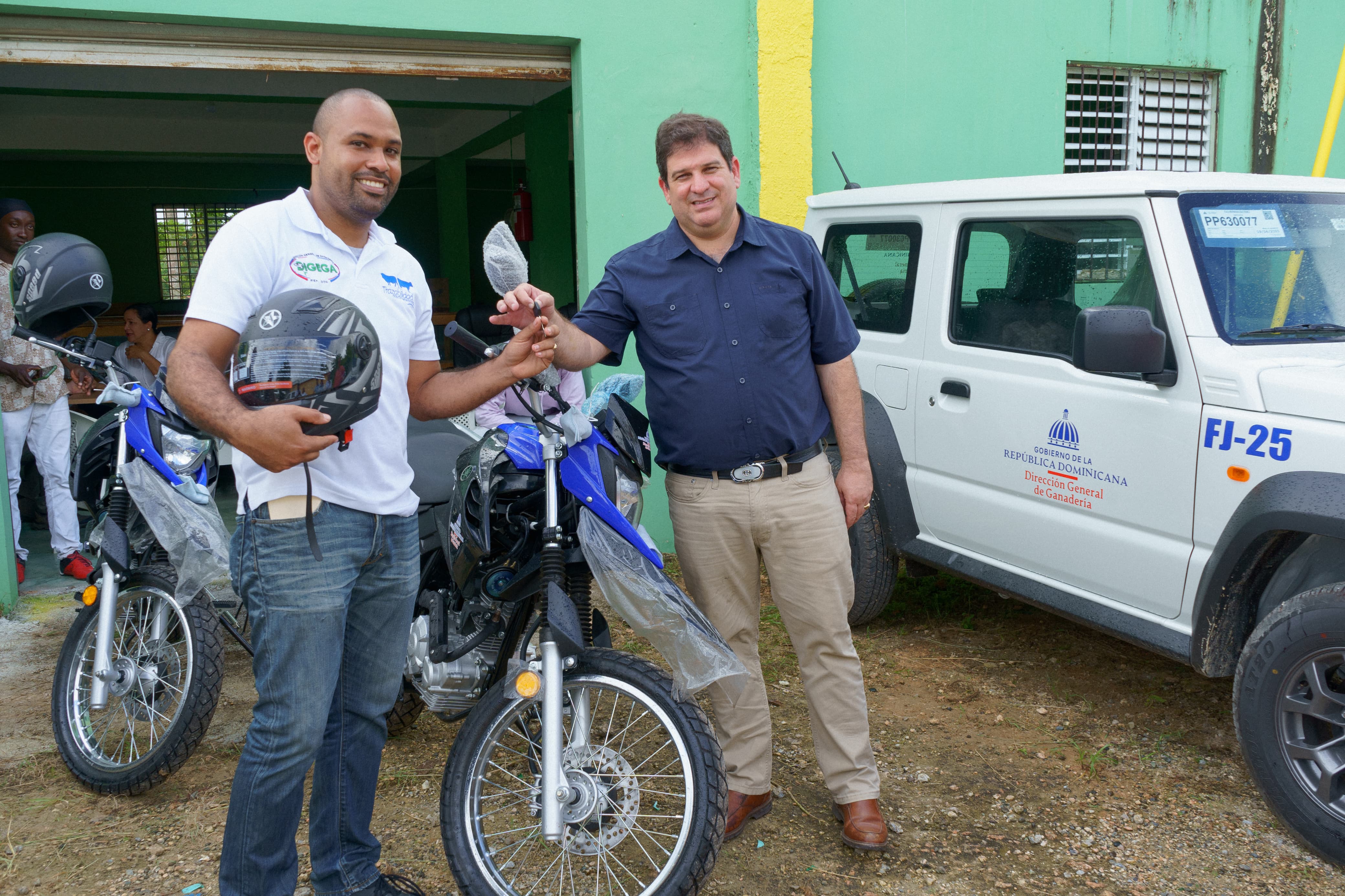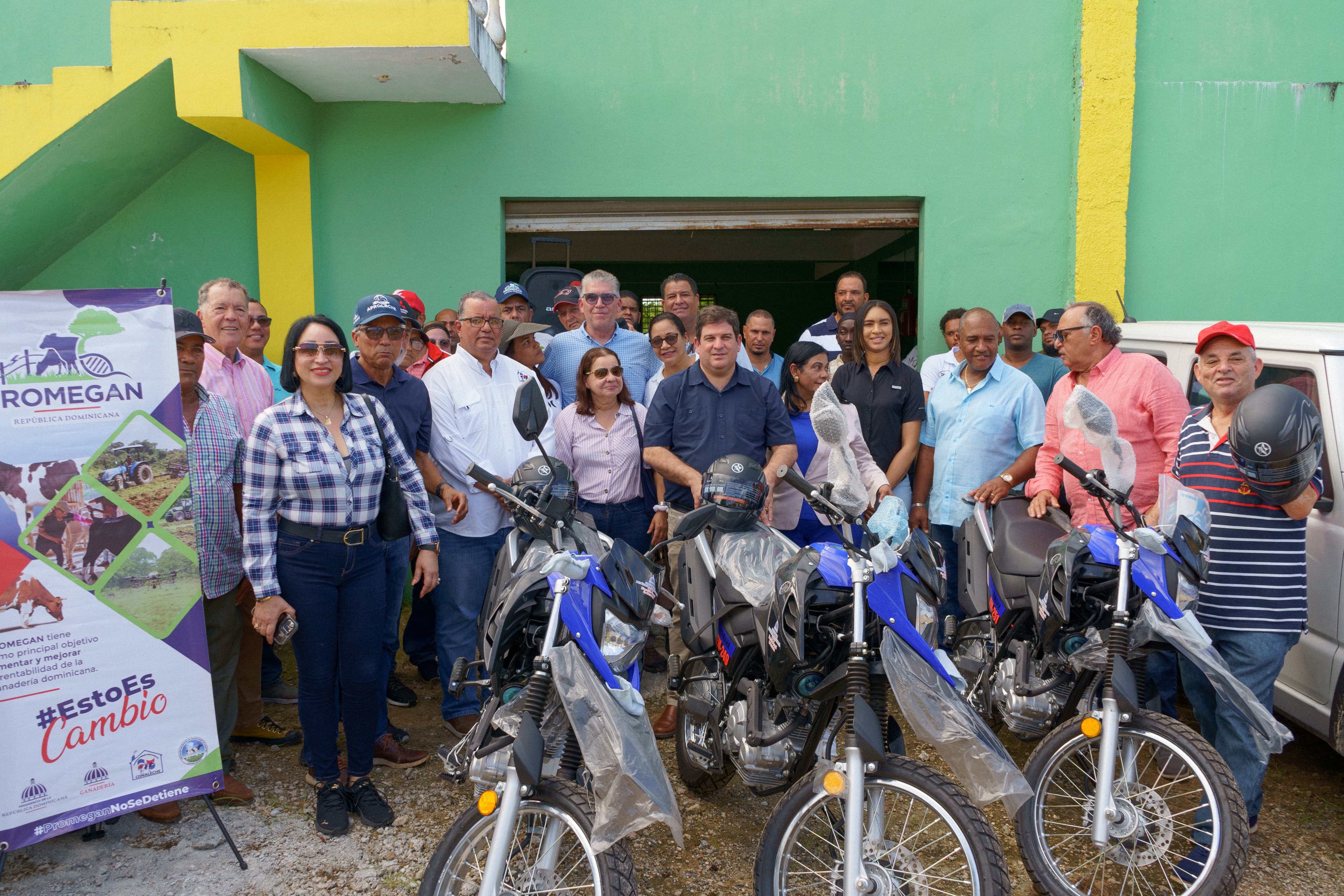 La Dirección General de Ganadería y el Consejo Nacional para la Reglamentación y Fomento de la Industria Lechera (CONALECHE) a través del Proyecto de Mejoramiento de la Ganadería en República Dominicana (PROMEGAN) entregó dos jeep, tres motores y 14 mil pacas de pasto a los técnicos y productores de Cabrera, provincia María Trinidad Sánchez.