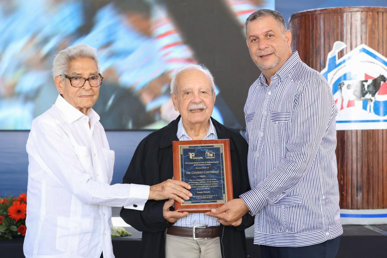 Durante la actividad se reconoció la importante labor que ha realizado el Dr. Cesareo Contreras a favor del sector Agropecuaria nacional y por ser el propulsor de la ley 180-01 que creo el CONALECHE en el año 201.
